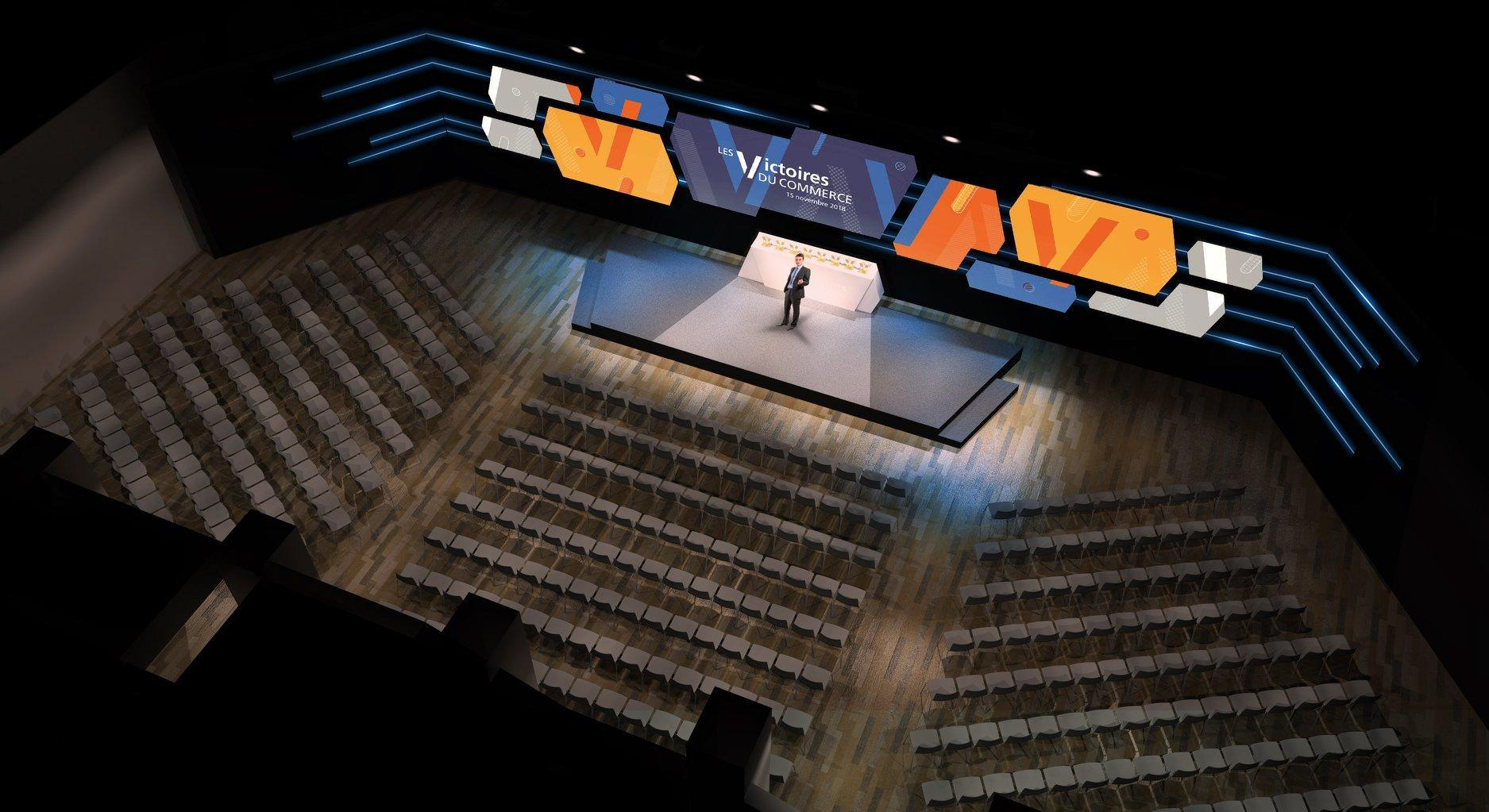 Réalisation la direction artistique et créative globale de l'évènement. Identité visuelle, invitation, save the date, signalétique, habillage visuel scénique, habillage vidéo.