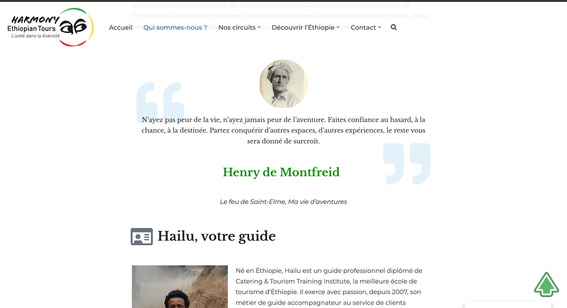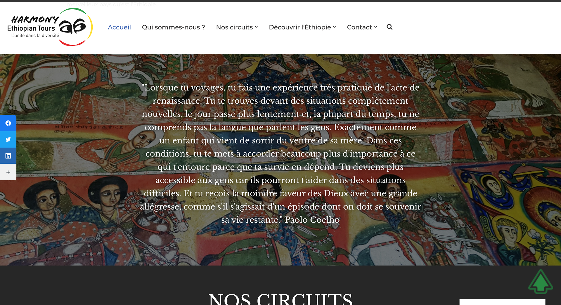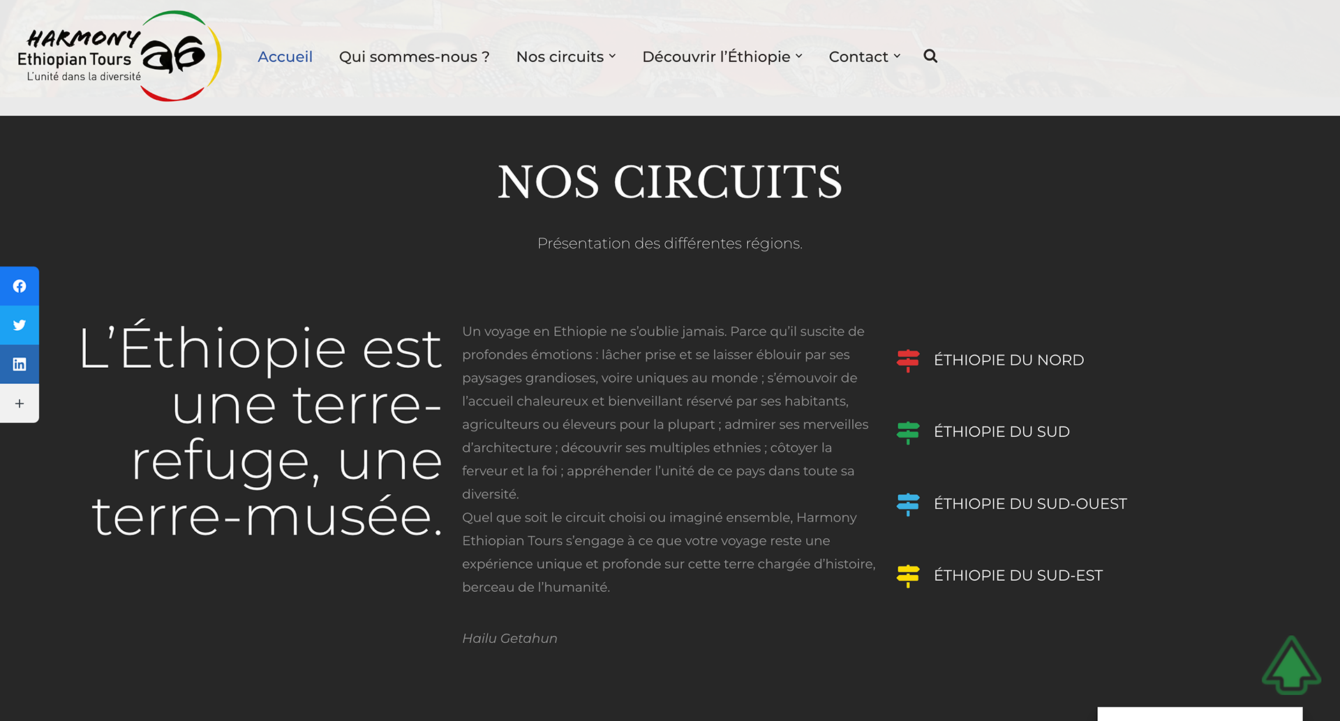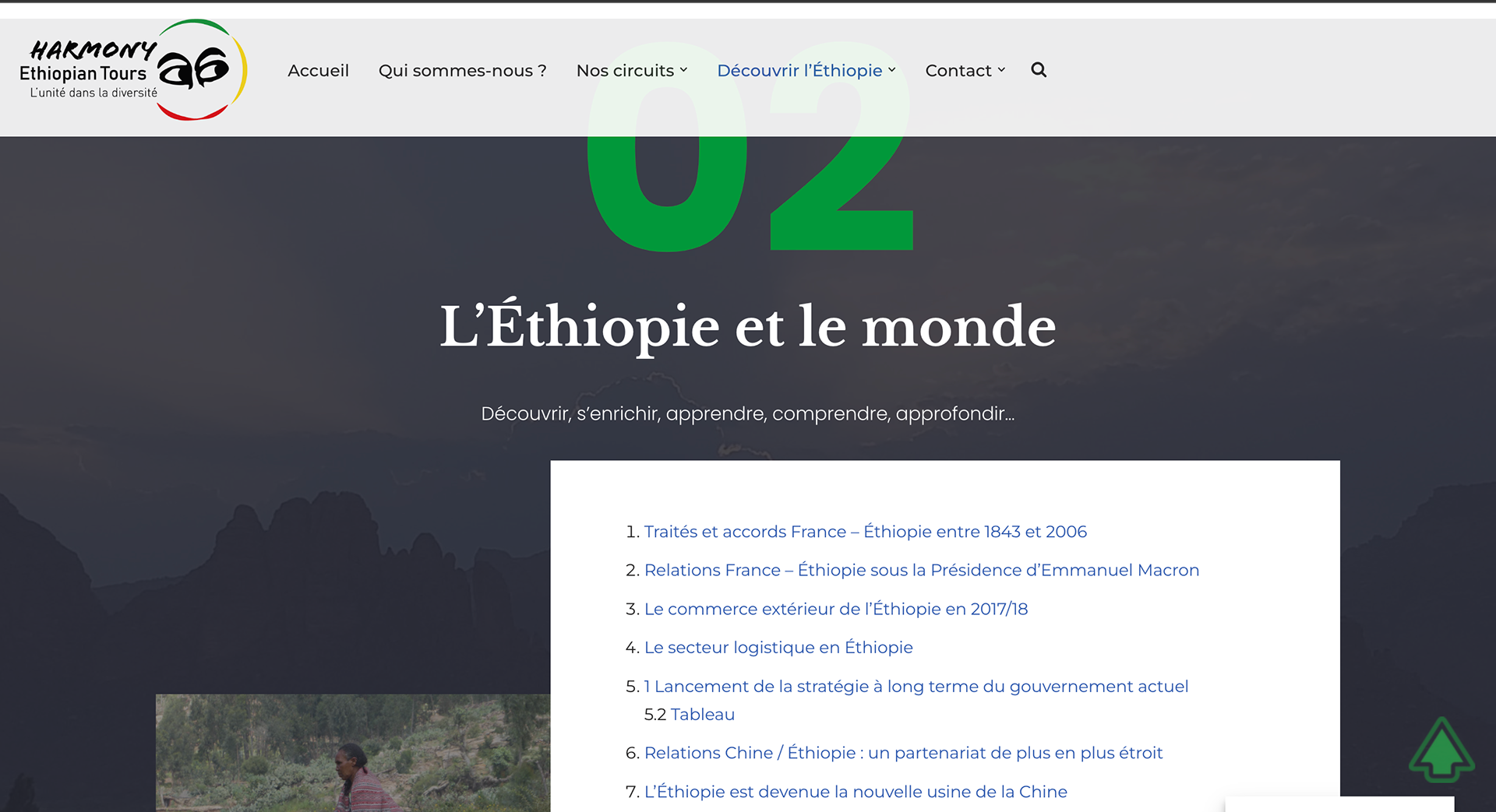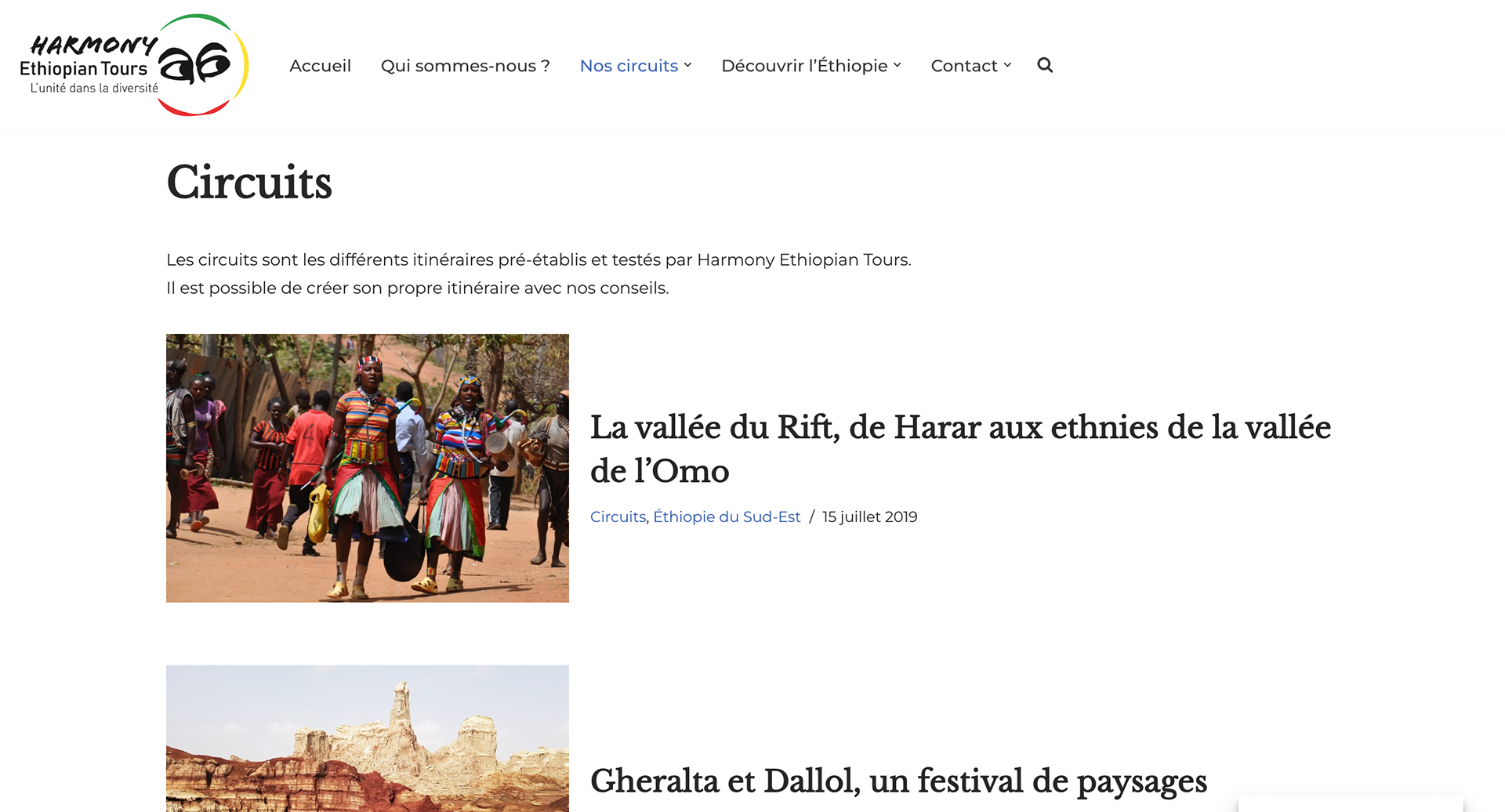 Rebranding de l'agence Harmony Ethiopian Tours, création de logo, papétrie, UX/UI, installation de site Wordpress, rédaction de contenu, SEO