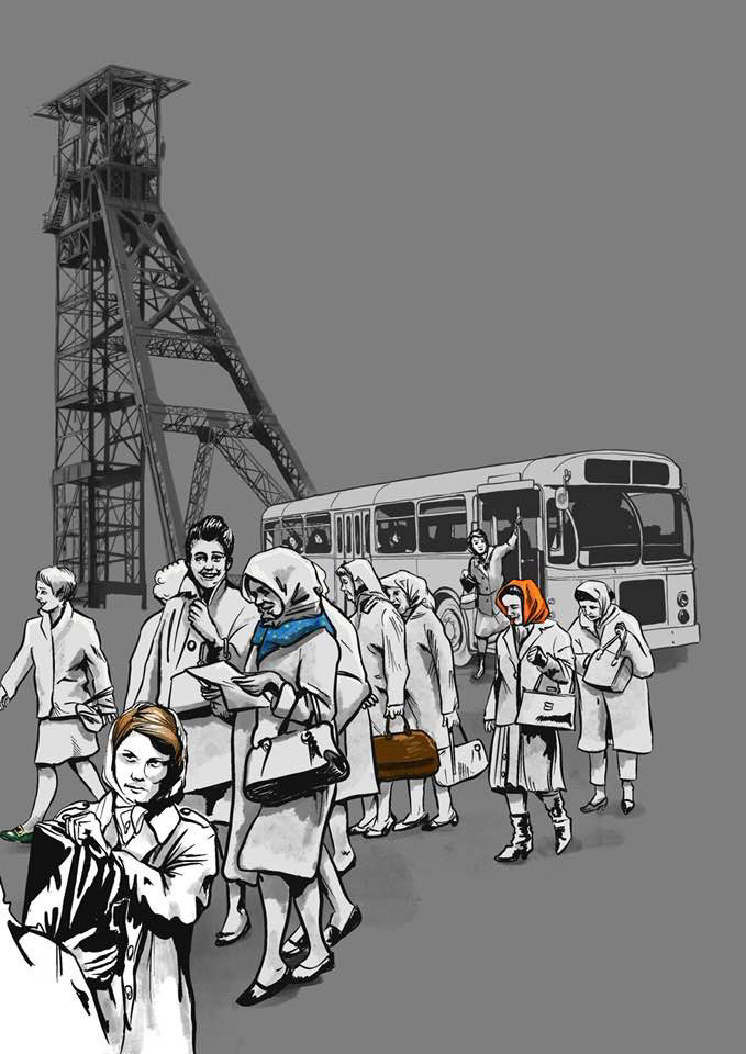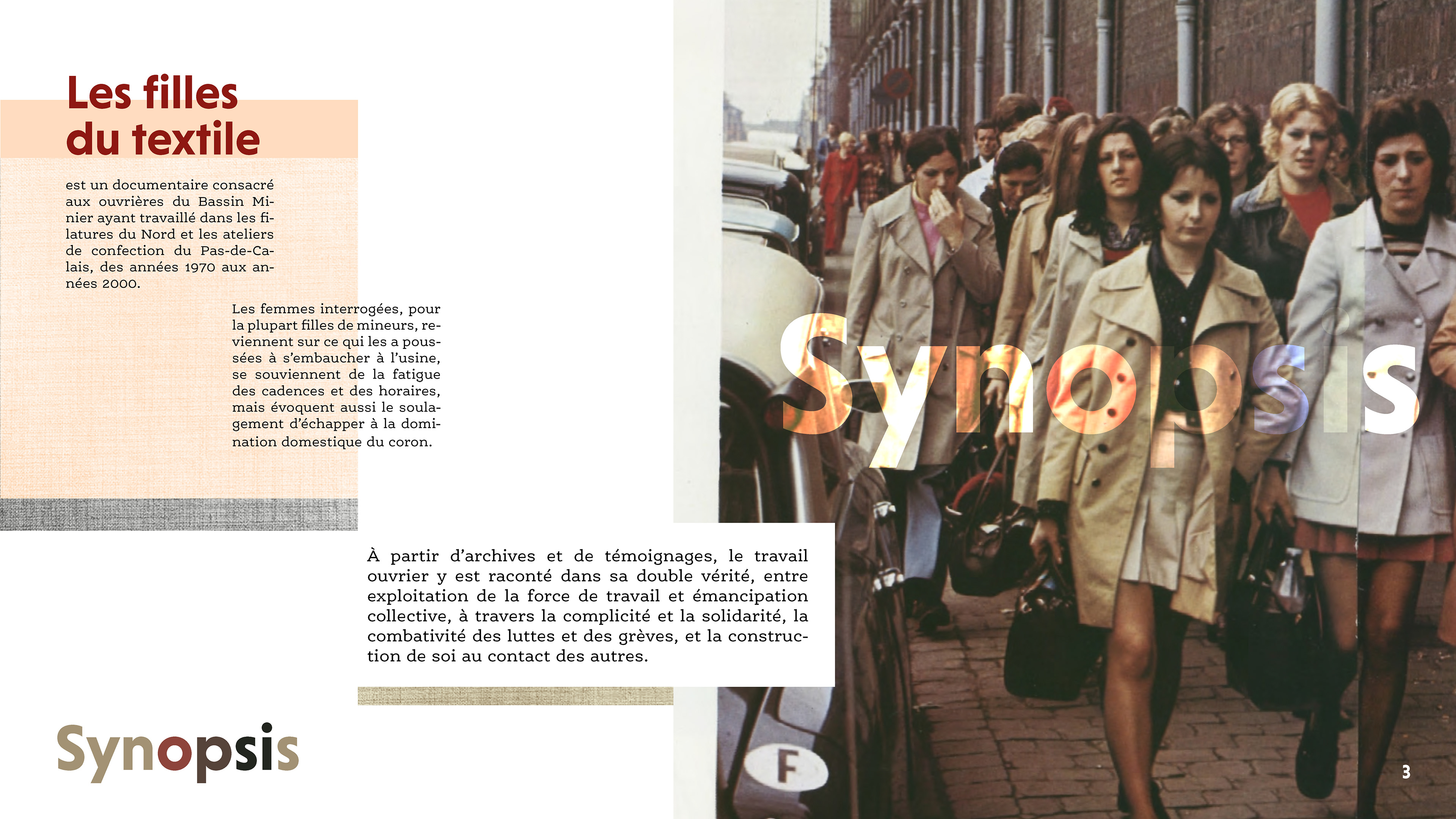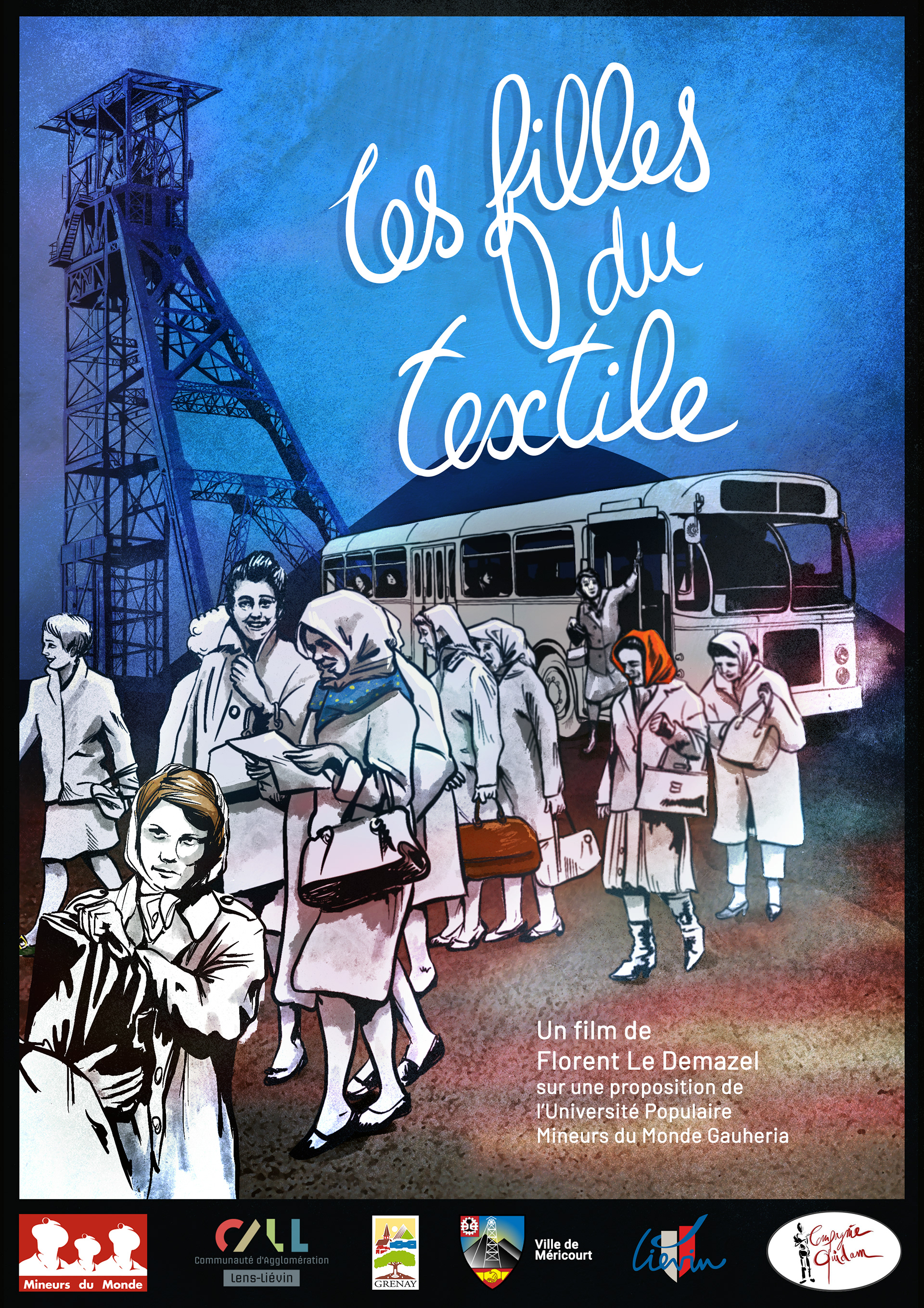 Création d'une affiche illustrée et d'un dossier de presse pour la sortie du documentaire "Les Filles du Textile" par Florent Le Demazel