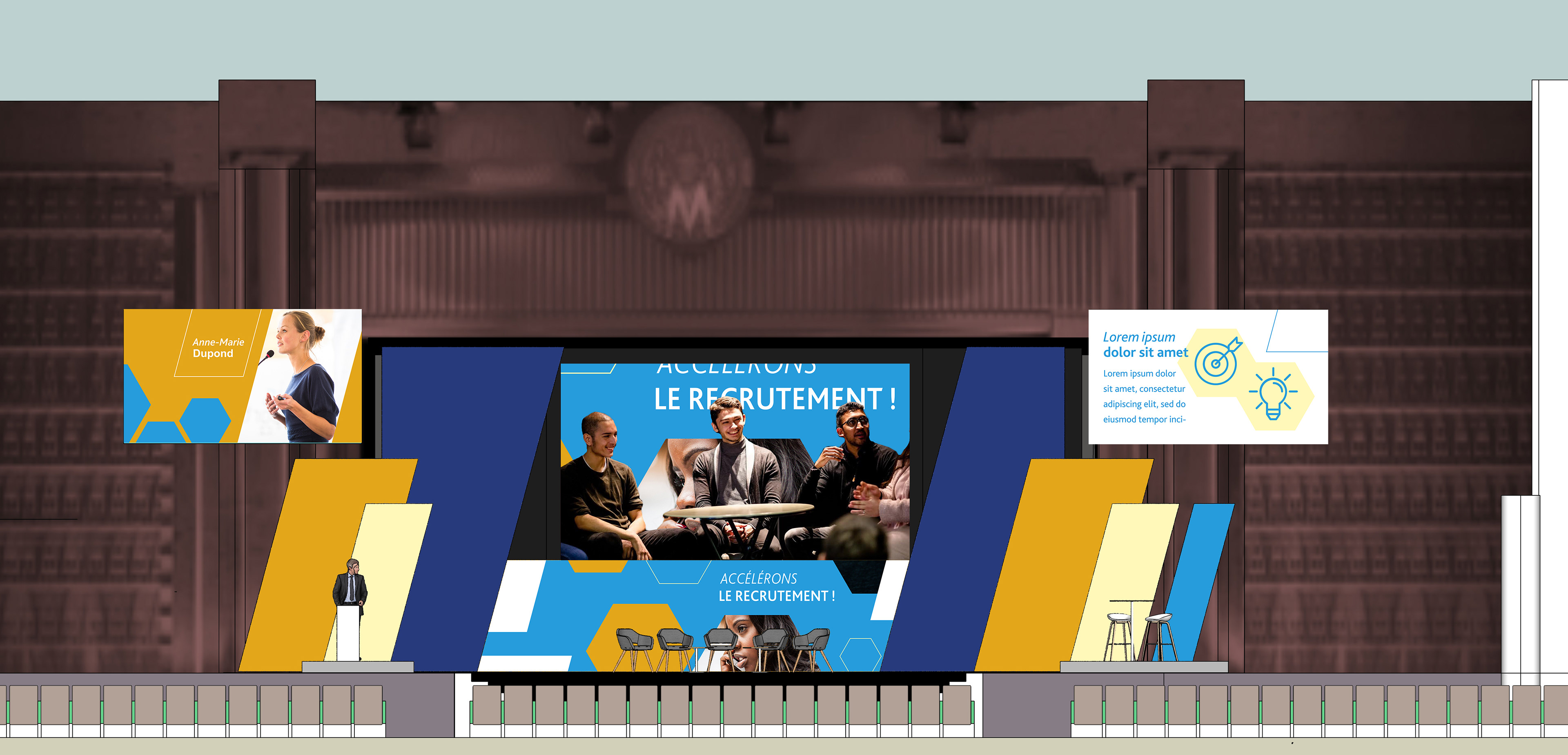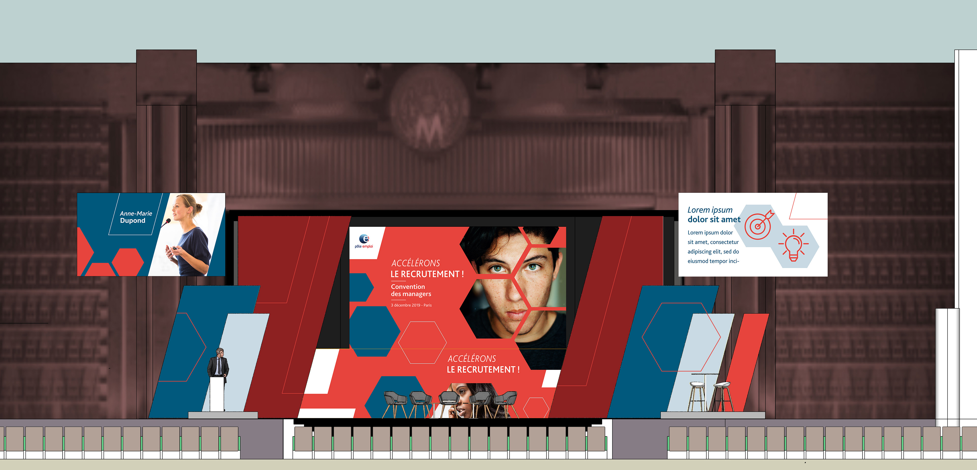 Création de l'identité visuelle, de la scénographie et des déclinaisons signalétiques de l'événement.